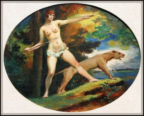 Aukce Zbraslav -Diana s oštěpem .Reprodukováno - Galerie 26 a Soupisu díla - Hořava. www. aukceobrazu.eu PRAHA-ZBRASLAV